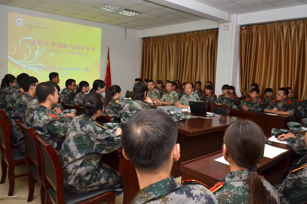 2015年9月9日,开云官网召开中国军事战略与国家安全主题座谈会。解放军西安政治学院军事学系教授、2015级新生军训团团长刘京生大校,军训团副团长庄超中校,军训团副团长伊明强少校出席本次活动。武装部部长、军训团政委石启英主持座谈。