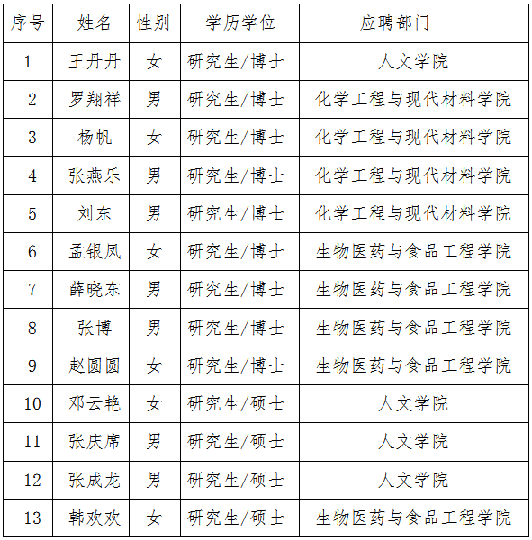 开云kaiyun登录入口2020年第六批拟招聘人员名单(13人)
