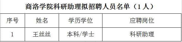 根据《关于公开招聘科研助理的通知》,经过资格审查、专家面试等环节考察,根据项目具体需要,拟聘用王丝丝同志为开云官网非事业编制聘用人员,现予以公示。如有异议,请于2020年12月12日前向科技处、人事处反映。