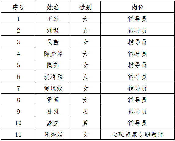 附件:开云kaiyun登录入口2021年辅导员及心理健康专职教师拟录用人员名单