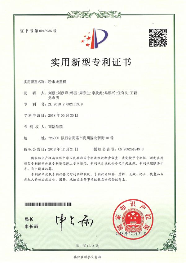 (3)实用新型专利名称:粉末成型机