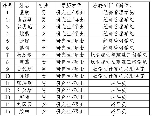 根据陕西省《关于陕西省事业单位公开招聘人员办法》规定及《开云kaiyun登录入口2019年人才招聘计划》,经过资格审查、试讲(笔试)、专家面试等环节考察,并经院长办公会2019年1月8日研究,同意招聘董朕等15位同志来开云官网工作,现予以公示。如有异议,请于2019年1月10日前向人事处或监察室反映。