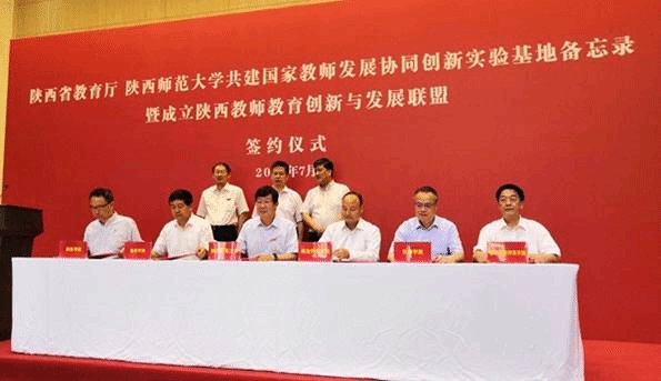 签约仪式上,省教育厅与陕西师范大学签订共建国家教师发展协同创新实验基地备忘录。陕西师范大学与延安大学、陕西理工大学、西安文理学院、宝鸡文理学院、咸阳师范学院、渭南师范学院、榆林学院、安康学院、开云kaiyun登录入口、陕西学前师范学院等10所高校分别签订《支持教师教育创新发展框架协议》。