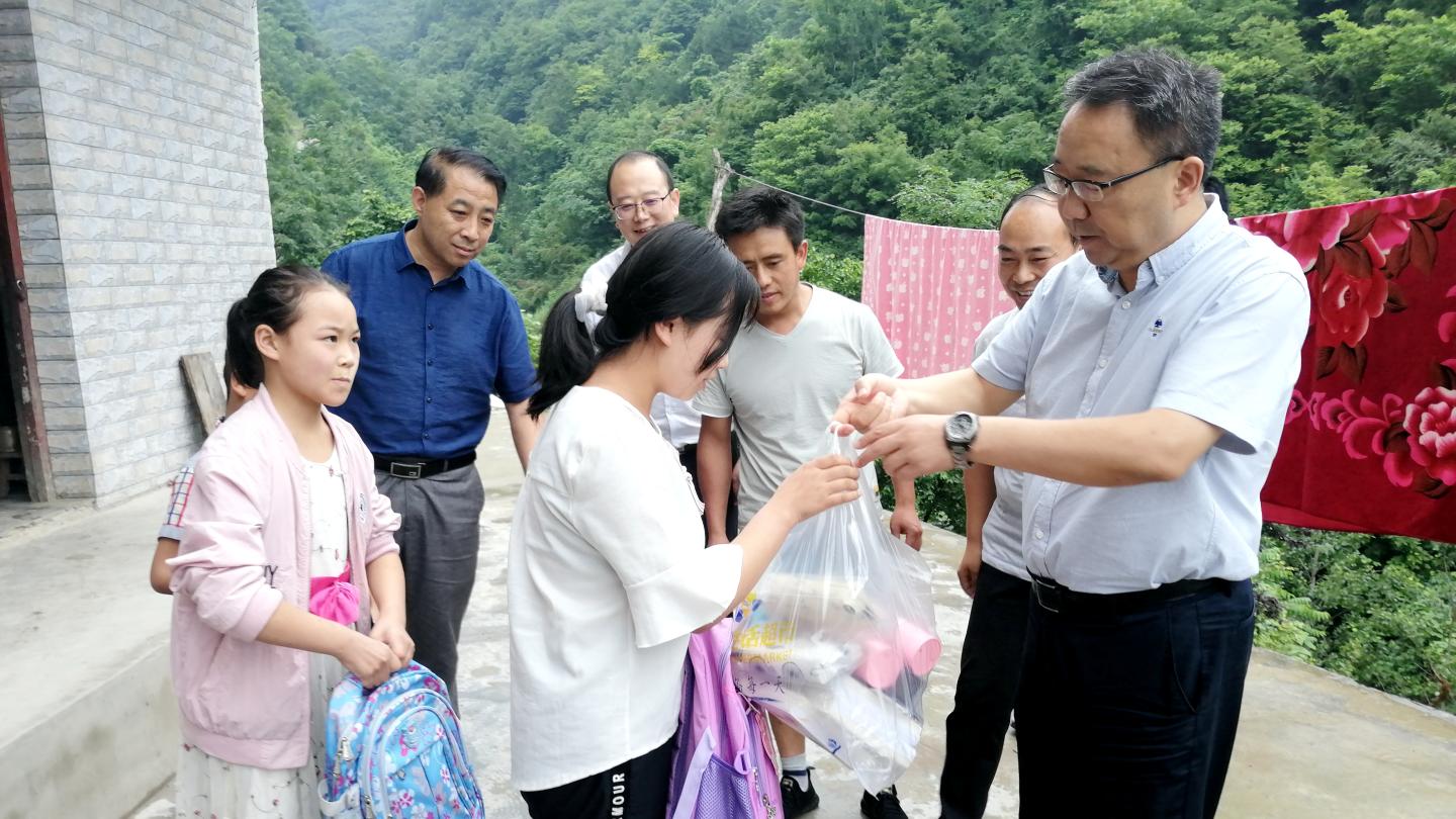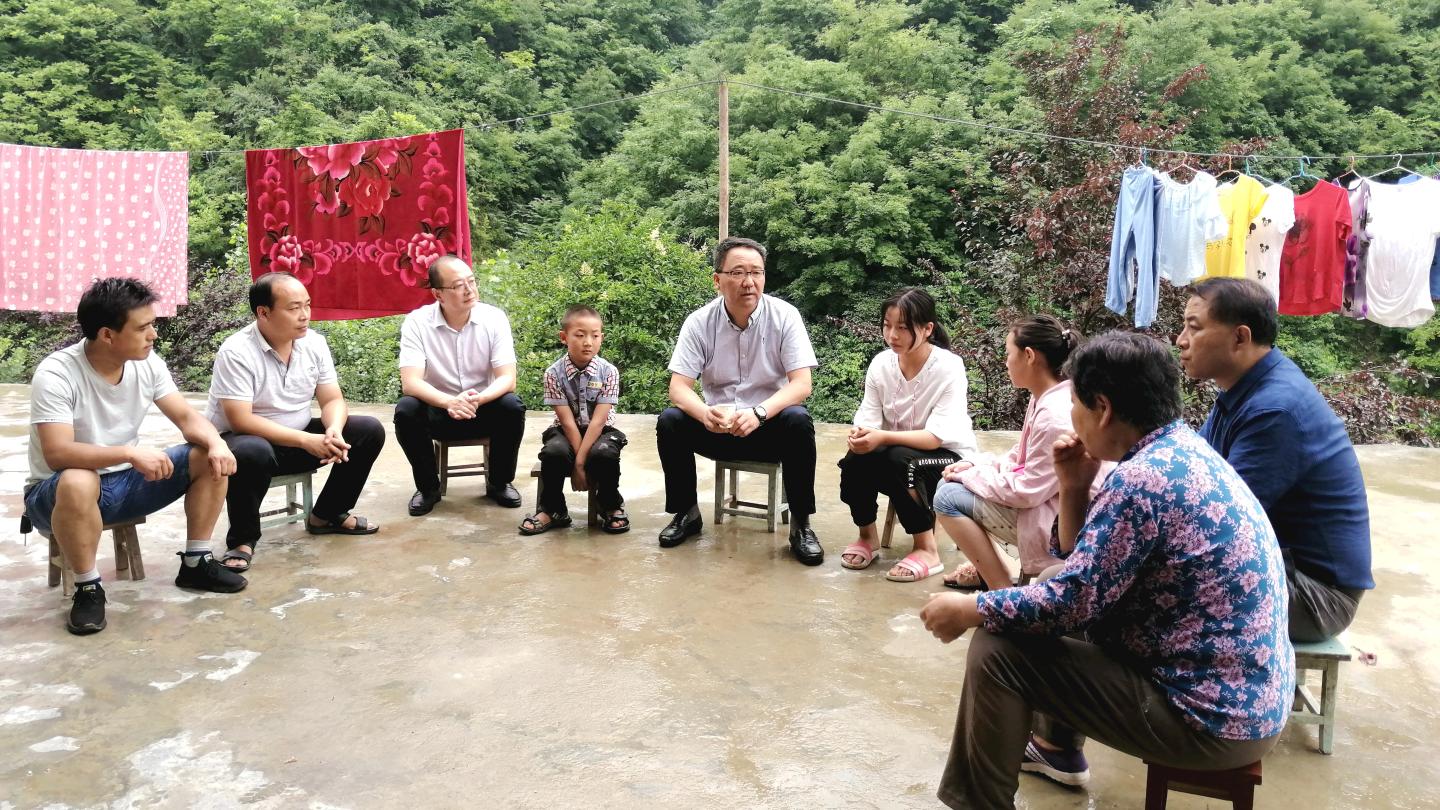 7月16日,党委书记龙治刚、副校长王新军赴开云官网包扶村——镇安县回龙镇和坪村走访慰问贫困户,党委委员、组织部部长郭瑾陪同慰问。