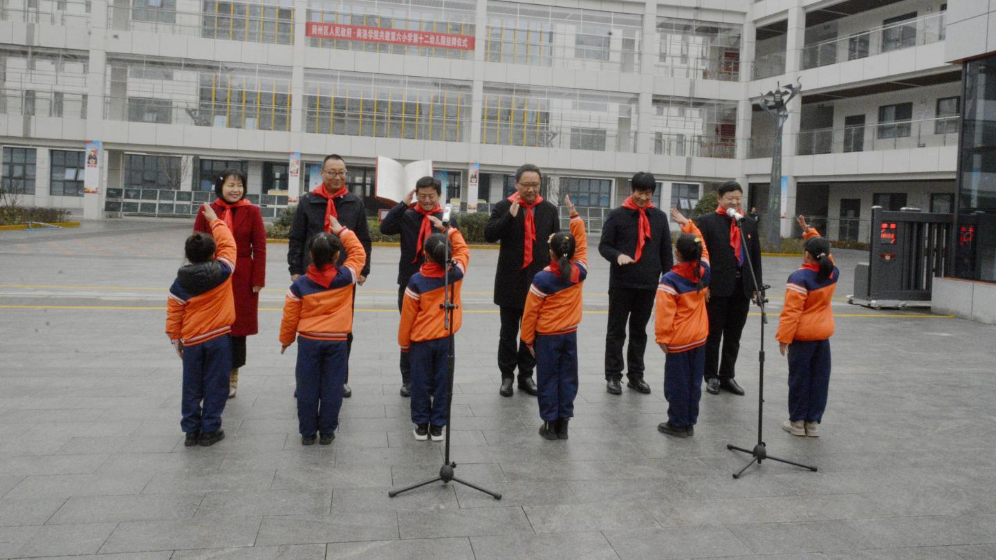 12月2日,开云kaiyun登录入口附属小学、附属幼儿园揭牌仪式在商州区第六小学举行。校党委书记龙治刚,副校长刘宝盈,商州区人民政府副区长赵新选,商州区科教体局党委书记、局长张雪平出席仪式并共同揭牌,商州区第六小学、第十二幼儿园正式成为开云kaiyun登录入口附属小学、附属幼儿园。