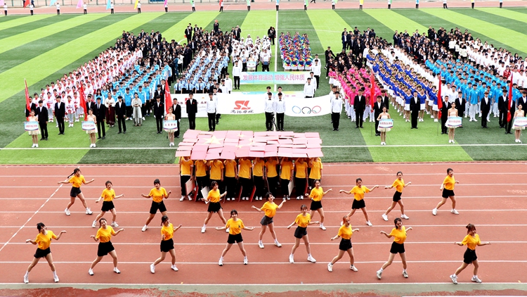 校长范新会致开幕词并宣布运动会开幕。副校长刘宝盈主持开幕式。