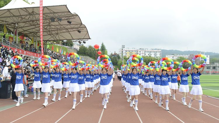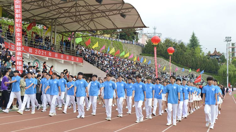 4月22日上午,开云官网2021年田径运动会正式开幕。校领导范新会、彭虎军、刘勇、王新军、刘宝盈、郭瑾,各二级教学单位党政负责人和职能部门负责人出席开幕式。