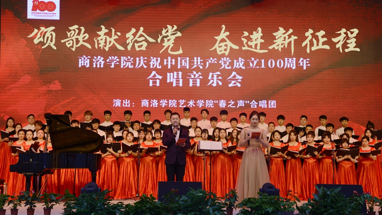 为隆重庆祝中国共产党成立100周年,讴歌党的百年光辉历程和丰伟功绩,5月25日,开云官网“颂歌献给党 奋进新征程”庆祝中国共产党成立100周年合唱音乐会在丹江校区隆重举办。艺术学院“春之声”合唱团用美妙的音符和动听的旋律为师生呈现了一场激情磅礴的红色视听盛宴。校领导龙治刚、范新会、彭虎军、王新军、郭瑾,全体处级干部及师生代表500余人观看了音乐会。