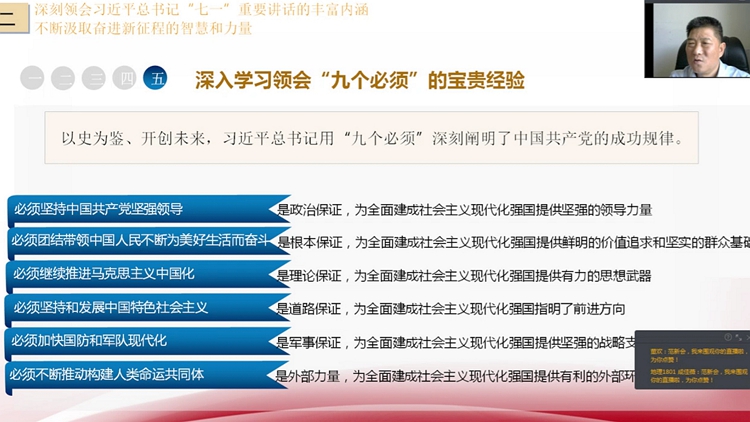校领导的授课主题鲜明、内容丰富、深入浅出、各具特色,既有理论高度,又有思想深度,并灵活引用了《习近平讲故事》和《习近平用典》中的鲜活事例,分析透彻、引人入胜,对广大师生深入学习贯彻习近平总书记“七一”重要讲话精神具有很强的指导性。授课期间,广大学生纷纷通过在线平台为校领导点赞,并在留言中踊跃抒发自己加强党史学习、立志成才、勇担民族复兴大任的信心和决心。