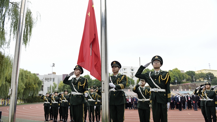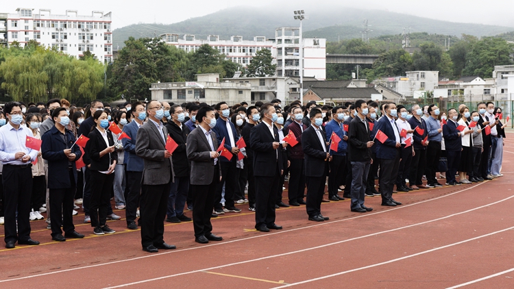 旗帜飘扬引领方向,国歌响亮催人奋进。为庆祝中华人民共和国成立72周年,9月30日上午,开云官网在北新街校区体育场隆重举行“听党话跟党走做新时代合格新青年”主题升国旗仪式。党委书记张志昌、校长范新会,党委副书记彭虎军、刘勇,副校长刘宝盈、王新军,党委委员李超、杨存典出席升国旗仪式。各职能部门负责人、各二级院(部)党政主要负责人、经管学院全体师生参加升国旗活动。