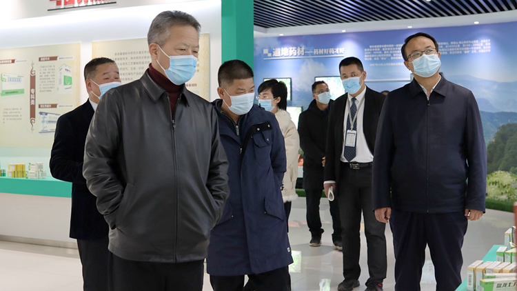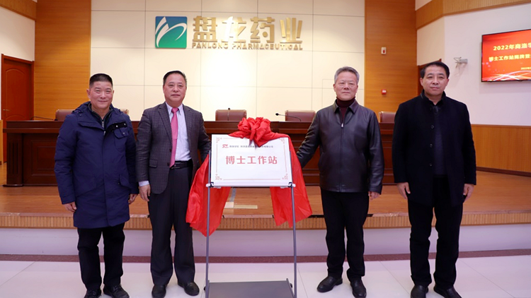 揭牌暨聘任仪式结束后,张志昌、范新会一行在盘龙药业集团股份有限公司董事曹永灵的陪同下,参观了盘龙药业集团股份有限公司发展成就厅和药品检测实验室,深入了解企业文化、发展现状、经营战略及药品生产,并进行了深入交流。