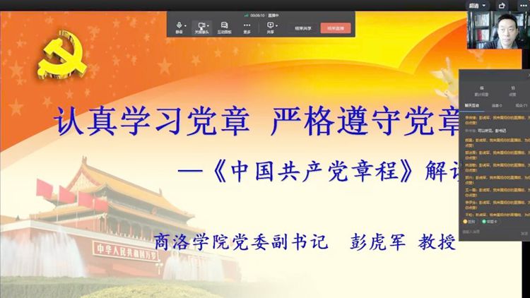 彭虎军以《认真学习党章 严格遵守党章》为题,从党章概述、党章的历史沿革、党的二十大通过的《中国共产党章程(修正案)》解读、怎样学习贯彻落实党章四个方面,详细阐述了党章的基本概念、特点、地位和作用,系统解读了党章的历史沿革和历次修改完善的重点内容。他从11个方面讲解阐释了党的二十大对党章的修改情况及其丰富的内涵,并指出学习贯彻党章的基本方法和应该掌握的重点问题,强调了遵守党章、尊崇党章、维护党章的重要意义和具体要求。