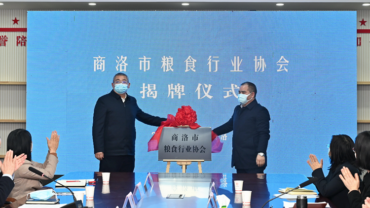 王宇鹏(左)、南玮琦(右)共同为“商洛市粮食行业协会”揭牌