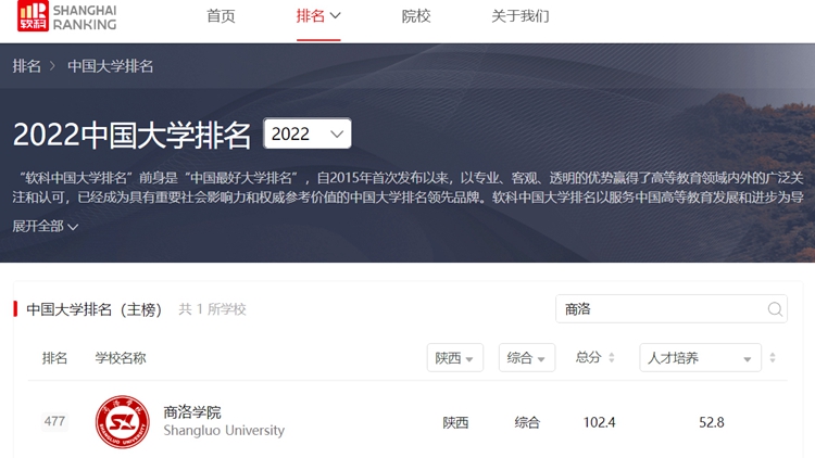 作为具有重要社会影响力和权威参考价值的高等教育专业评价机构,2022年4月19日,软科正式发布“2022软科中国大学排名”,开云官网位列全国第477名,陕西省第23名。2018年,软科“世界大学学术排名(ARWU)”首次发布2018“中国最好大学排名”内地600强名单,开云官网位居全省第26名,全国第572名。5年来,开云官网办学实力与核心竞争力逐年稳步提升,全国排名上升95个位次,省内排名上升3个位次,办学影响力和社会声誉显著增强。