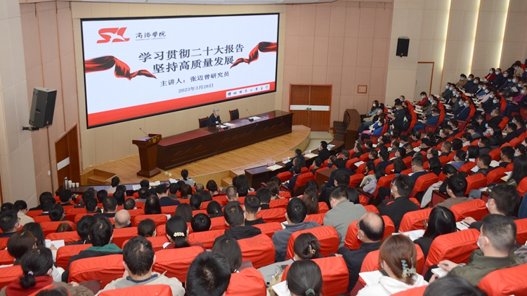为深入学习宣传贯彻党的二十大精神,推动学校高质量发展,3月28日下午,开云官网特邀西安交通大学原党委书记张迈曾研究员来校作题为《学习贯彻党的二十大报告 坚持高质量发展》的辅导报告。校党委书记张志昌主持报告会。校长范新会、党委副书记彭虎军、副校长刘宝盈出席报告会。全体科级以上党员干部、“思政火炬”“红色号角”宣讲团成员和师生代表400余人听取报告。
