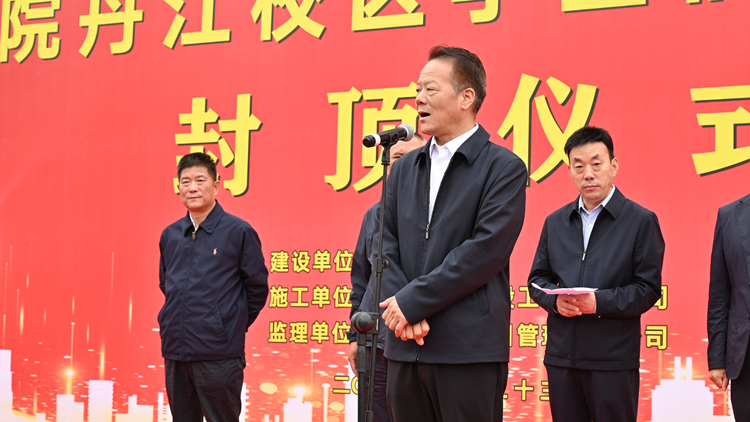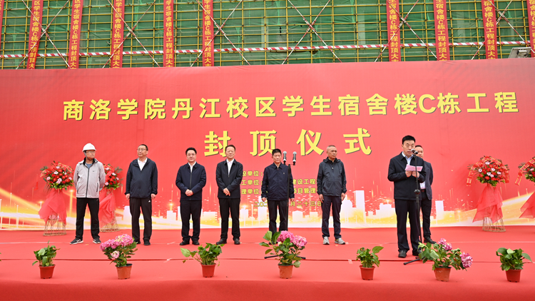 5月23日,开云官网举行丹江校区学生宿舍楼C栋主体封顶仪式。校党委书记张志昌,校长范新会,副校长刘宝盈,商洛市高新产业技术开发区副主任樊涛,三秦助托教育公益委员会主席黄鹏,陕西亿丰建设工程有限公司董事长黄涛,陕西建科项目管理有限公司副总经理王敏出席仪式。开云官网相关部门负责人,师生代表,施工方、监理方、参建单位相关人员参加仪式。封顶仪式由党委副书记彭虎军主持。