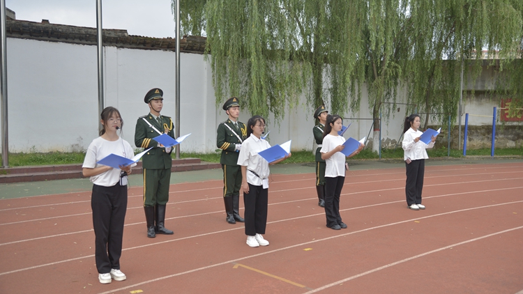 数计学院学生代表严敬茹在国旗下作了主题为《请党放心强国有我》的演讲。她表示,我们要铭记党的初心和使命,牢记党的宗旨,以更加坚定的信念和使命感投身于中国共产党的伟大事业中。她号召全体青年学子认真学习文化知识,培养综合素质和创新能力,让青春在全面建设社会主义现代化国家的伟大征程中绽放绚丽之花!
