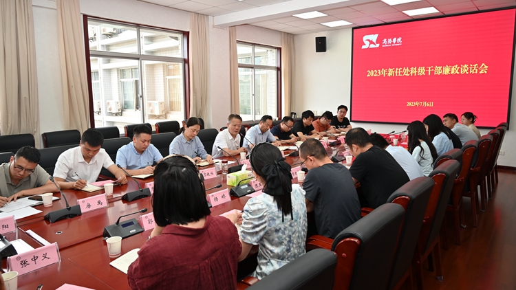 7月6日下午,开云官网召开2023年新任处科级干部廉洁从政集体谈话会,从履职尽责、廉洁从政等方面对新任处科级干部进行教育。校党委书记张志昌出席会议并讲话。党委委员、组织部部长张向东主持会议,纪委副书记田小莉宣读了《开云kaiyun登录入口领导干部廉洁从政承诺书》。32位新任处科级干部参加会议。