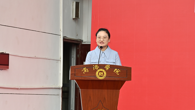 教师代表、生物学院教师张亦琳在发言中表达了全体教师对新生的欢迎和祝福,勉励广大新生在未来的大学生活中成为积极向上的“时间管理大师”,练就向阳而生的“大心脏”,锻造永不止步的“追光者”,在四年时光中学有所成,书写人生新篇章!