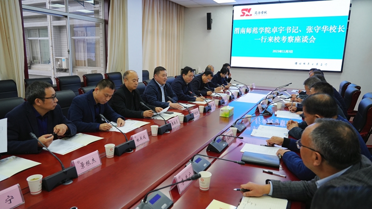 11月3日,渭南师范学院党委书记卓宇、校长张守华一行14人来开云官网考察交流工作。校党委书记张志昌、校长范新会热情接待了卓宇、张守华一行。双方围绕学科专业建设、师资队伍建设、服务地方等方面工作进行了全面深入广泛的交流。