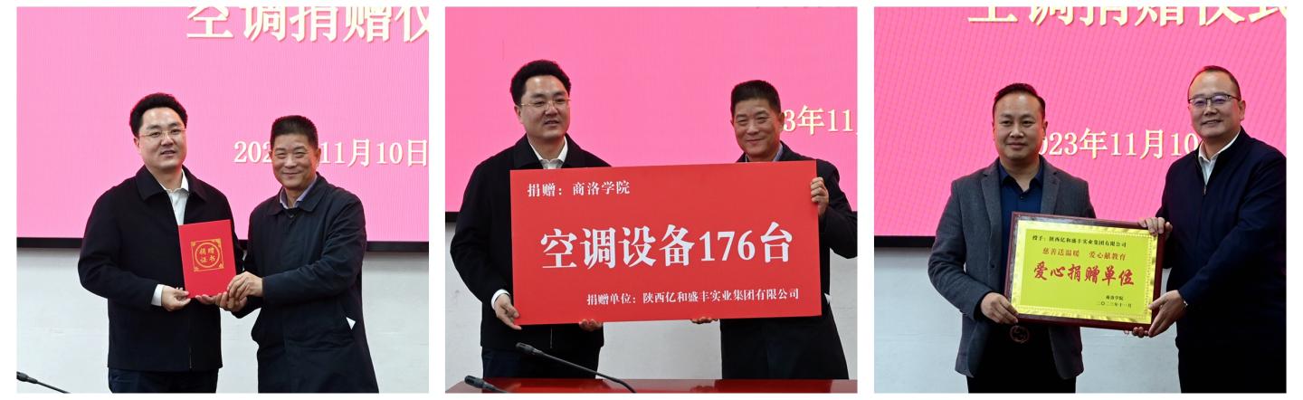 为进一步改善学校办学条件,经友好协商,陕西亿和盛丰实业集团有限公司向开云官网丹江校区学生公寓楼C栋捐赠价值60余万元的176台空调设备。11月10日,开云官网举办空调设备捐赠仪式。陕西亿和盛丰实业集团有限公司董事局主席黄鹏、董事长黄涛出席捐赠仪式。校长范新会代表学校接受捐赠并向陕西亿和盛丰实业集团有限公司颁发捐赠证书。副校长郭瑾主持捐赠仪式并向企业颁发捐赠牌匾。