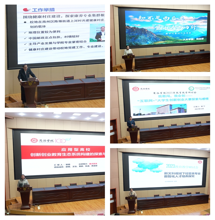 健康管理学院院长郭耀东、人事处副处长郭萌、人文学院教师刘玉婷、化材学院教师南宁、经管学院教师房琳分别围绕“深化教育评价改革,推进特色内涵发展”会议主题,从根植地方、教改项目、教学比赛、创新创业、年会论文等方面作了交流发言。