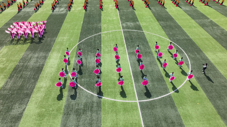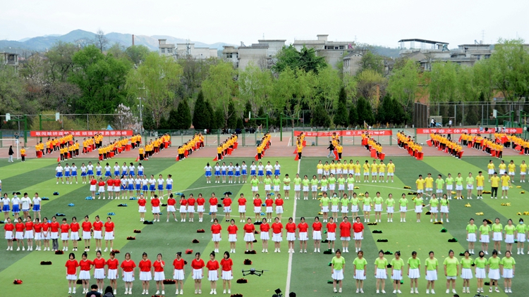 在开幕式表演中,电信学院大型团体操表演《奋进商院 礼献祖国》惊艳绽放,240位学子在灵活变化的队形中展露出深厚的爱国爱校之情,以无畏的勇气和不懈的追求一起迈步向未来。健康管理学院的230余名学子步伐矫健,动作轻盈,为大家带来活泼有力的啦啦操和洗手操表演,他们用行动向大家诠释健康的真谛,呼吁大家参与健康生活,助力商洛“康养之都”建设。附属小学的少年儿童以活泼可爱的身姿带来舞蹈《盛世欢歌》,一起祝福祖国的明天天更蓝、山更绿、水更清,经济更繁荣、人民更幸福、国力更强盛!建工学院团体操表演以舞动的热情撒播欢乐的阳光,用特有的创意和魅力展示出商院学子朝气蓬勃的精神风貌,通过“站起来”“富起来”“强起来”三个环节,向在场观众勾勒出山河无恙、繁荣昌盛的盛世景象。