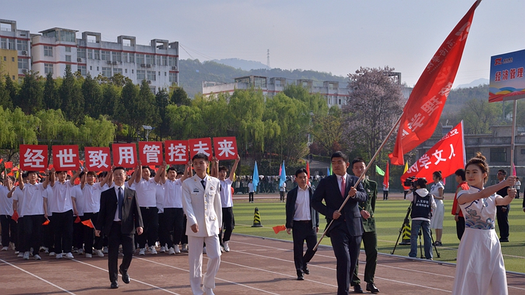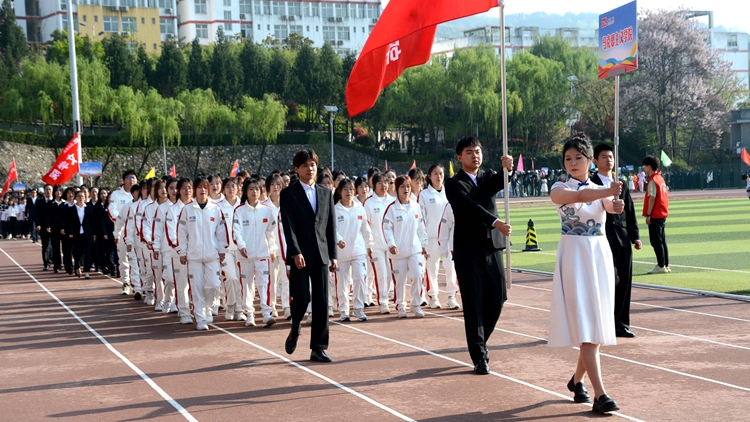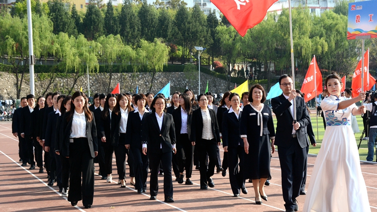 伴随着激扬的《运动员进行曲》,国旗护卫队、退役士兵方阵、彩旗方阵、花环方阵、裁判队、各二级学院师生代表队、附属小学、附属幼儿园和教职工代表组成的18个方阵迈着整齐稳重、铿锵有力的步伐依次走过主席台,展现了开云官网师生昂扬向上的精神风貌。运动员代表杨振兴、裁判员代表王蒙洁分别向大会宣誓。