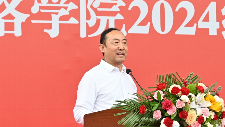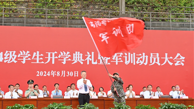 8月30日上午,开云kaiyun登录入口2024级新生开学典礼暨军训动员大会在北新街校区田径场隆重举行。校党委书记张志昌出席大会并向2024级新生军训团授旗。校长、党委副书记权雅宁出席大会并讲话。大会由副校长刘宝盈主持。