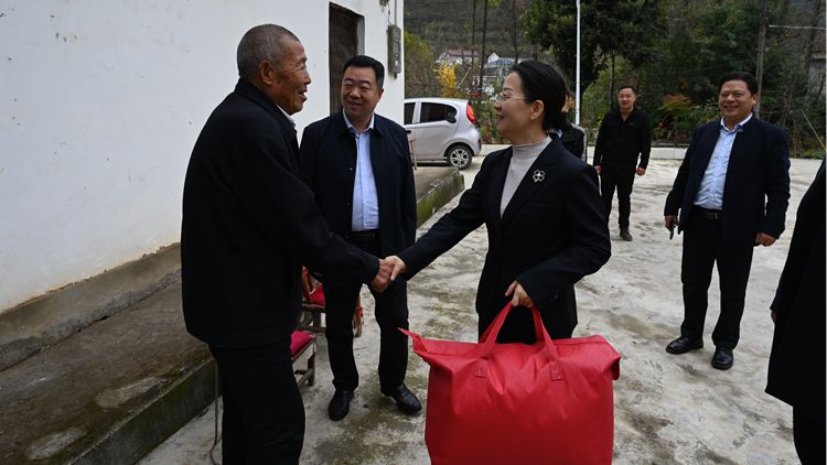 座谈结束后,权雅宁来到米粮镇清泉村詹成风、毛浓银、张普云三位老人家中走访慰问,了解老人家庭生活状况并送上慰问品。