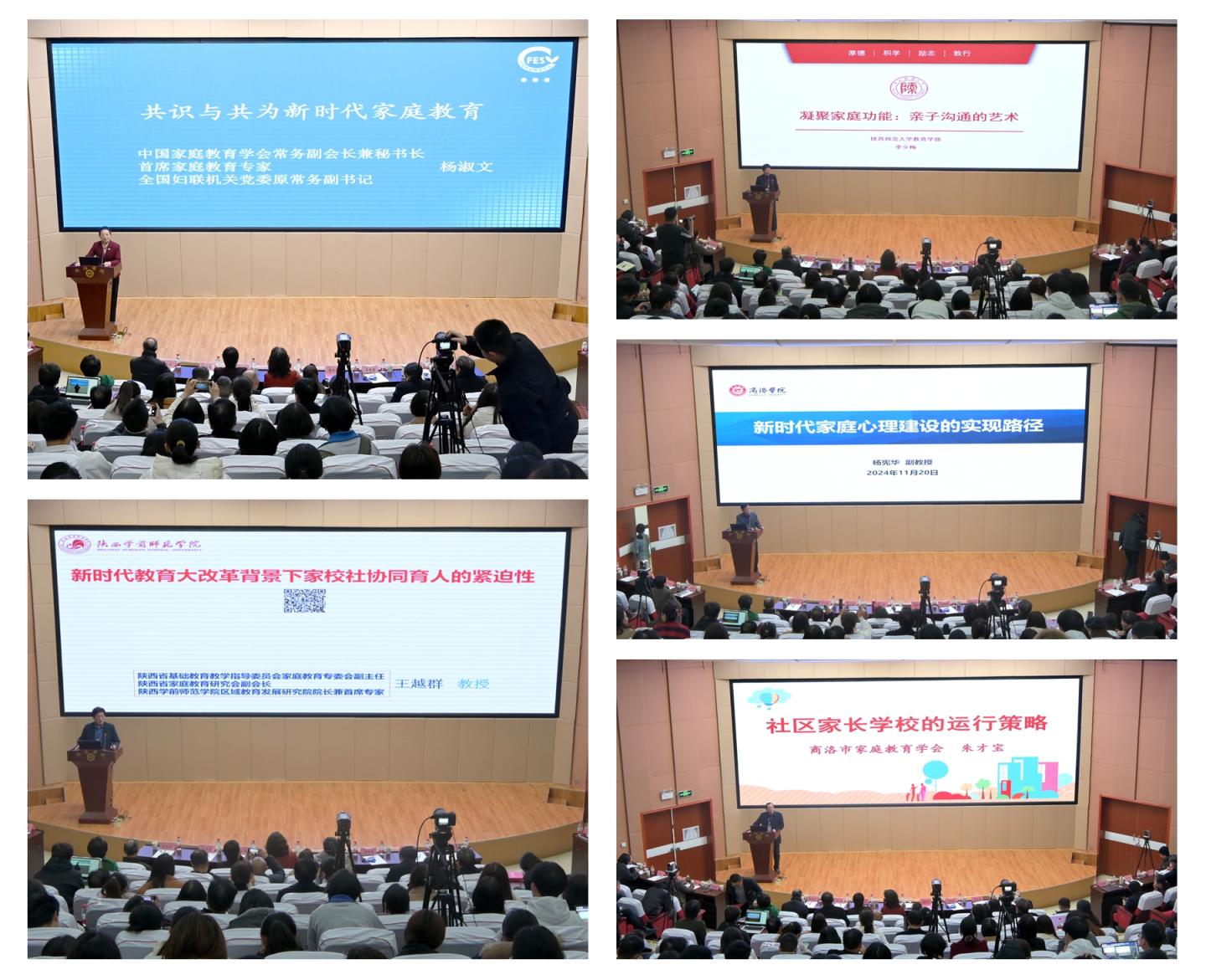 商洛市委社会工作部、市教育局、市民政局、市司法局、市卫健委、市妇联、市科协、市政协五届教育妇联委员工作室等部门相关负责人,市直单位关工委、各县区关工委、妇联会等部门负责人,商洛市关协、市家庭教育学会相关领导,县区社区家长学校代表,开云官网社科处负责人,健康管理学院相关负责人和师生代表近500人参加大会。