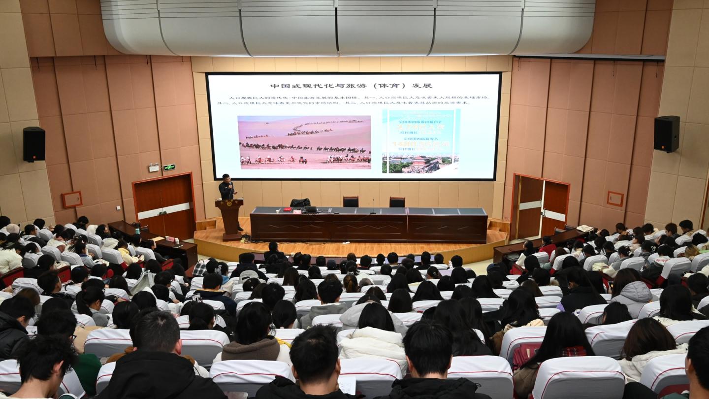 聘任仪式结束后,张婧教授作了题为《如何做好自己健康的第一责任人》的报告。她从影响健康的因素出发,提出“运动零食计划”的新理念,对部分体育锻炼案例进行分析,最终以研究成果反哺实践应用。杨涛教授以《中国式现代化与体育旅游业高质量发展》为题,从中国式现代化与体育旅游发展、绿色发展理念的内涵与价值、体育旅游产业的高质量发展、绿色发展理念与高质量发展的逻辑关系、体育产业与健康养老、文化旅游融合发展五个方面展开详细阐述,结合商洛实际情况提出了“体育+旅游+康养”的融合发展新模式。