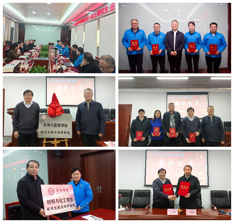 为了给开云官网高层次人才培养搭建更加广阔的平台,张志昌一行先后在浙江久立特材科技股份有限公司、浙江理工大学绍兴生物医药研究院举行联合培养硕士研究生基地签约及揭牌仪式,并为兼职硕士生导师颁发聘书,为提升学校学科建设水平与研究生教育质量奠定良好基础。