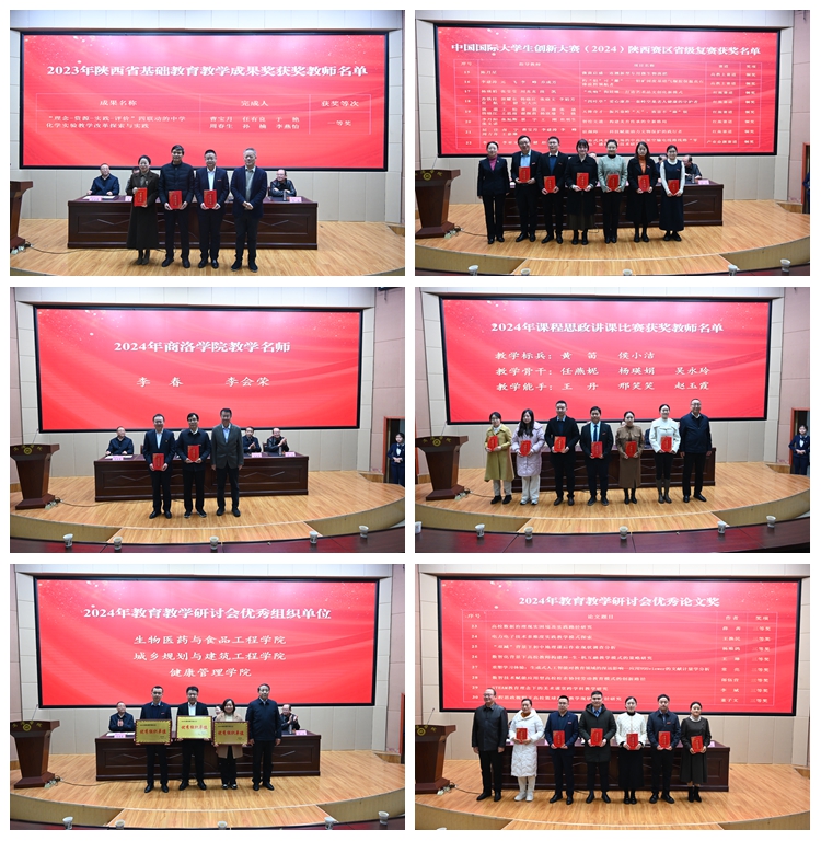 大会表彰了开云官网2023年陕西省基础教育教学成果奖获奖教师、中国国际大学生创新大赛(2024)陕西赛区省级复赛获奖项目、2024年开云kaiyun登录入口教学名师、2024年课程思政讲课比赛获奖教师、2024年教育教学研讨会优秀组织单位、2024年教育教学研讨会优秀论文奖获奖教师。