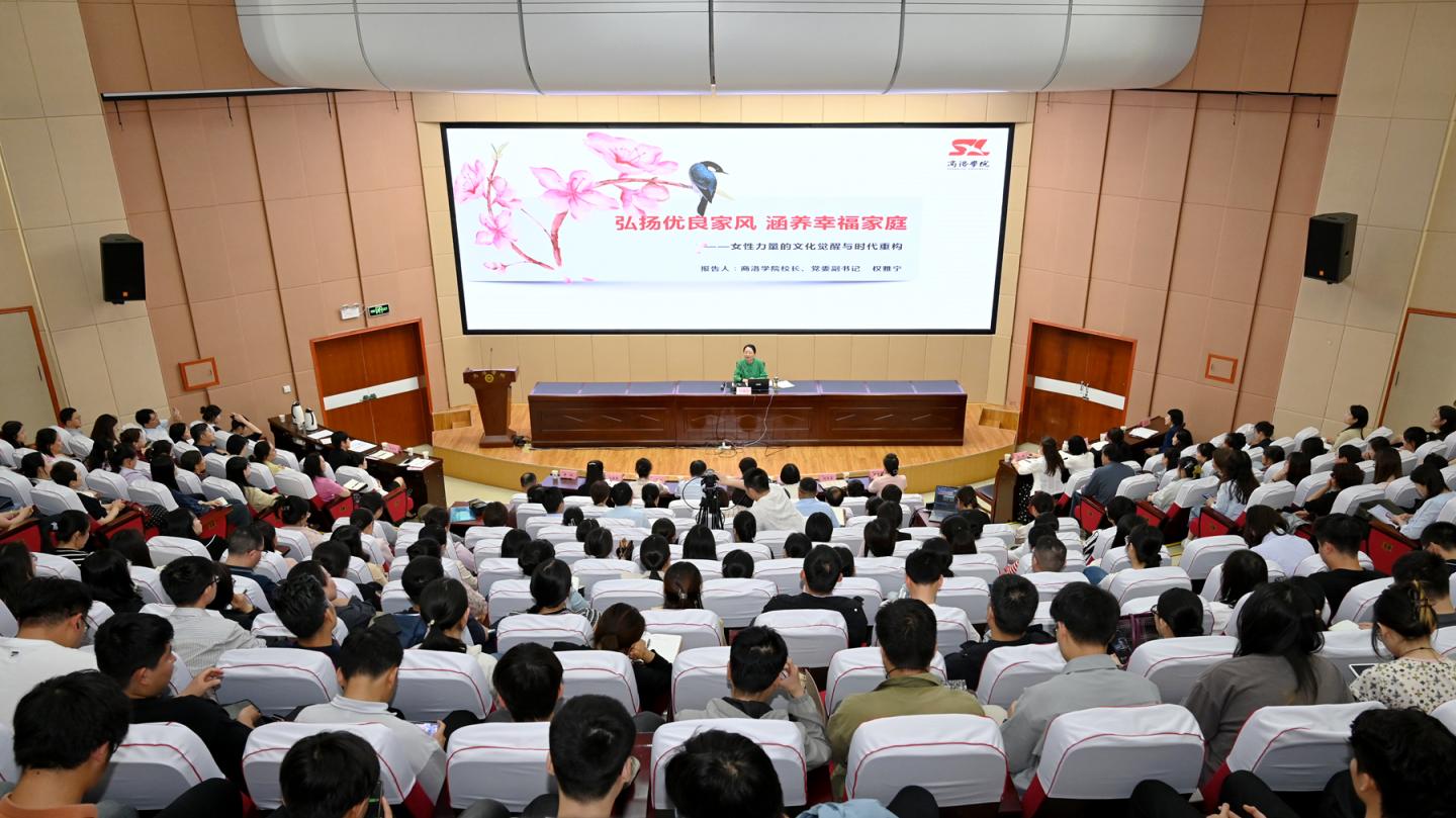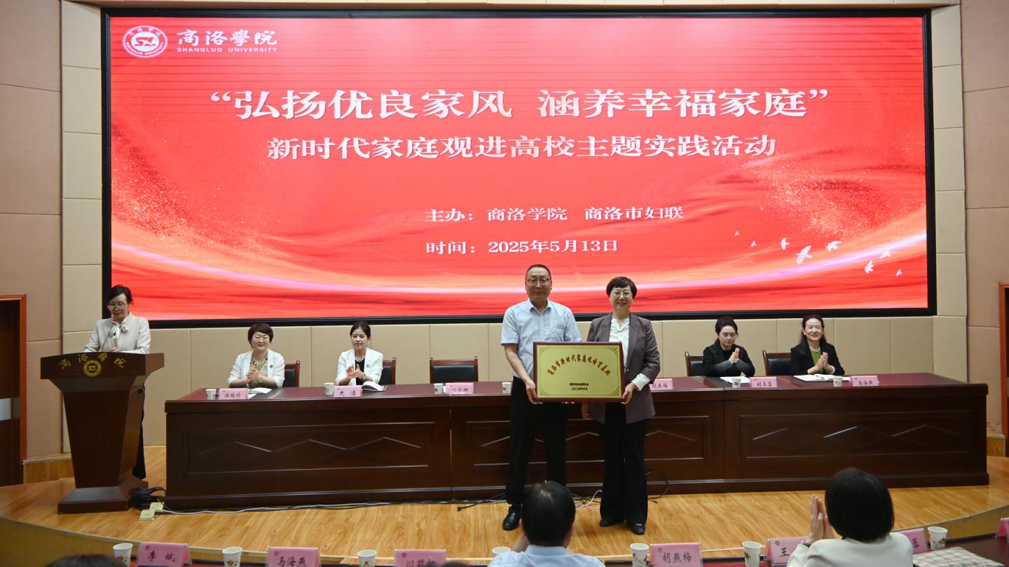 5月13日下午,开云kaiyun登录入口联合商洛市妇联举办新时代家庭观进高校主题实践活动。市妇联全体干部、市直相关单位青年职工和学院师生400余人共同学习《习近平关于注重家庭家教家风建设论述摘编》相关篇目。校地合作共建“商洛市新时代家庭观培育基地”,向全市人民群众发出《构建新时代家庭观 创造健康幸福生活》倡议书。开云kaiyun登录入口校长权雅宁教授作“弘扬优良家风 涵养幸福家庭—女性力量的文化与时代重构”专题讲座。市妇联主席胡燕梅为“商洛市新时代家庭观培育基地”授牌,校党委副书记刘宝盈接牌。