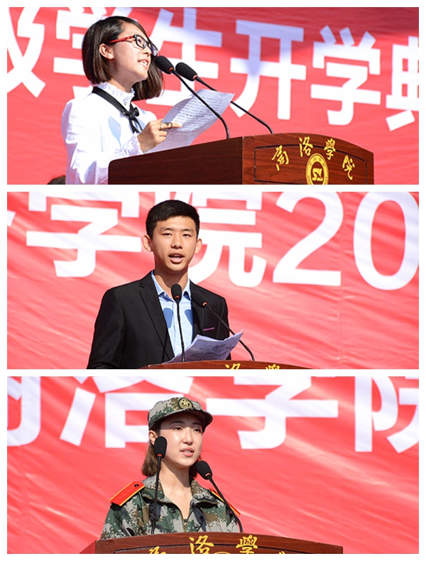 教师代表乔成芳博士,在校学生代表王祥宇,2017级新生代表张海明分别作了热情洋溢的发言。