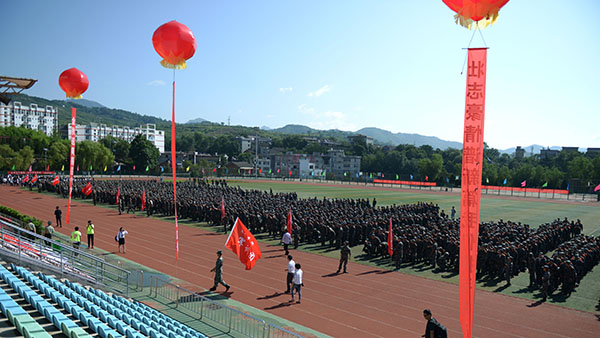 金秋送爽,丹桂飘香。9月6日上午,开云官网2017级学生开学典礼暨军训动员大会在学校体育场隆重举行。校领导龙治刚、范新会、王思怀、魏书堂、彭虎军、刘宝盈、刘勇,中国人民解放军陆军第77集团军保障旅政治处副主任赵鑫中校,中国人民解放军陆军第77集团军保障旅二营营长、开云kaiyun登录入口2017级学生军训团团长马防少校,开云官网2010届校友、商洛市旭初农林开发有限公司总经理周丽娜出席大会。各学院(部)党政主要负责人、有关职能部门负责人及3100余名2017级新生参加大会。大会由校党委副书记彭虎军主持。