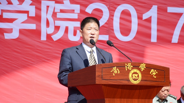 范新会代表全校师生员工对2017级新同学来开云kaiyun登录入口学习深造表示热烈欢迎,对获得“新生奖学金”的同学们表示热烈祝贺,对承担军训任务的全体官兵表示衷心的感谢,并介绍了开云官网的办学历史、办学定位、办学理念、办学特色和未来发展前景。范新会指出,建校以来,开云官网已为国家培养了4万余名合格人才,今天的开云kaiyun登录入口已经成为镶嵌于商洛大地、丹江河畔的一张金色名片,一座为国家源源不断培养和输送优秀人才的黉门圣殿,以强有力的人才支持、智力支撑、文化引领和科技服务,持续推动着商洛区域经济社会和文化发展。