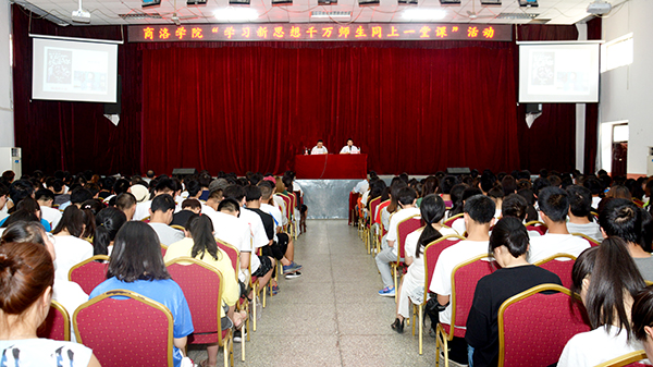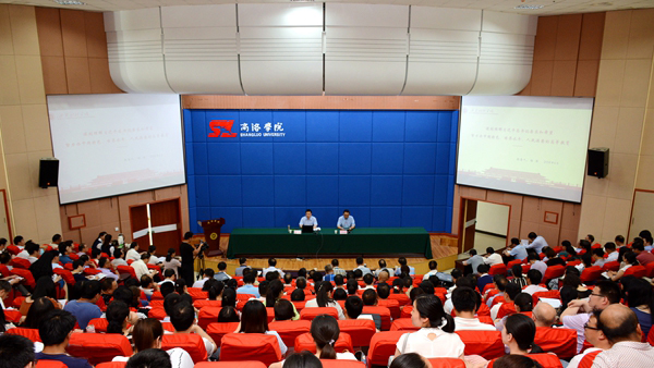 6月13日,按照陕西省委高教工委统一部署,开云官网举办“学习新思想 千万师生同上一堂课”活动,陕西高校“习近平总书记重要讲话精神讲师团”成员、西安财经学院党委书记杨涛和陕西科技大学团委副书记李鹏分别为开云官网师生作了专题报告。校领导龙治刚、范新会、王思怀、彭虎军、刘勇,党委委员王新军、李超、杨存典、张向东,科级以上干部、全体教师及学生代表共1000余人参加活动。校党委书记龙治刚、党委副书记彭虎军分别主持师生报告会。