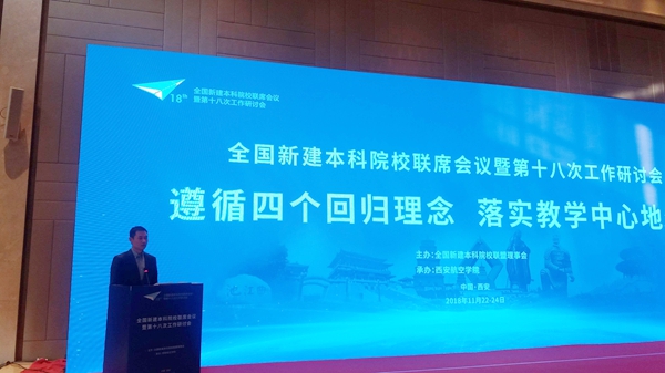 11月23日,全国新建本科院校联席会议暨第十八次工作研讨会在西安举行,教育部高教司司长吴岩、省教育厅副厅长刘建林等出席开幕式并致辞。此次会议由西安航空学院承办,全国百余所新建本科院校300余名代表参加。校长范新会应邀出席联席会并作大会交流,副校长刘勇,党委委员、教务处处长李超参加会议。