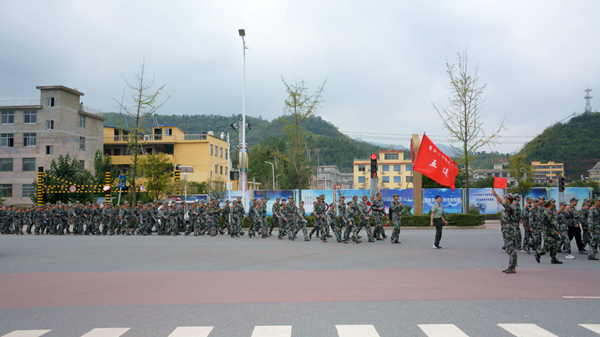 上午8时整,全体参训新生按照10个连编制在学校体育场整齐列队, 随后,在各连旗手的引领下,同学们意气风发,迈着坚定有力的步伐,向目的地进发。走出北新街校区大门后,军训拉练队伍沿街东进,到G40高速引线转而向南,跨过丹江大桥,沿比亚迪大道前行,9点半左右,拉练队伍到达目的地开云官网丹江校区,原地稍作休息,然后原路返回,拉练总行程约11公里。