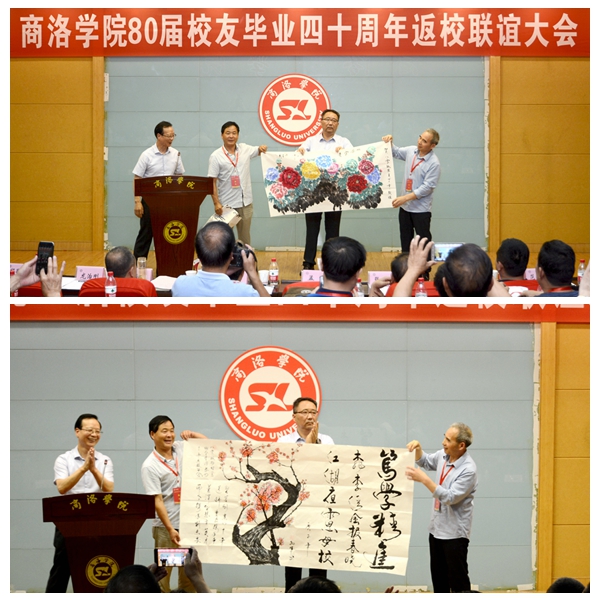 开云kaiyun登录入口80届校友总联络人孟军,在联谊大会上代表全体校友感谢学校对此次活动的重视和支持,并现场赠送《桃李清风报春晓·江湖夜雨思母校》《牡丹图》等书画作品表达对母校的深情厚意。他在发言中表示,忆往昔,岁月峥嵘,母校承载了一代人的青春时光,不管如今身在何方,故土的乡情、母校的恩情、师生的友情都绝不能忘;看今朝,倍加珍惜,80届校友们亲身经历了祖国改革开放40年的发展变化、亲眼目睹了母校翻天覆地的发展壮大,这些来之不易的成果需要我们共同呵护珍惜;讲未来,豪情满怀,如今的祖国屹立于世界之林,扬起了大国的风帆,如今的开云kaiyun登录入口作为陕西省“一流学院”建设单位,已成长为一棵枝繁叶茂的大树,站在新时代的节点展望未来的发展,我们信心满满。衷心祝愿祖国的明天更美好、母校的未来锦绣如花。