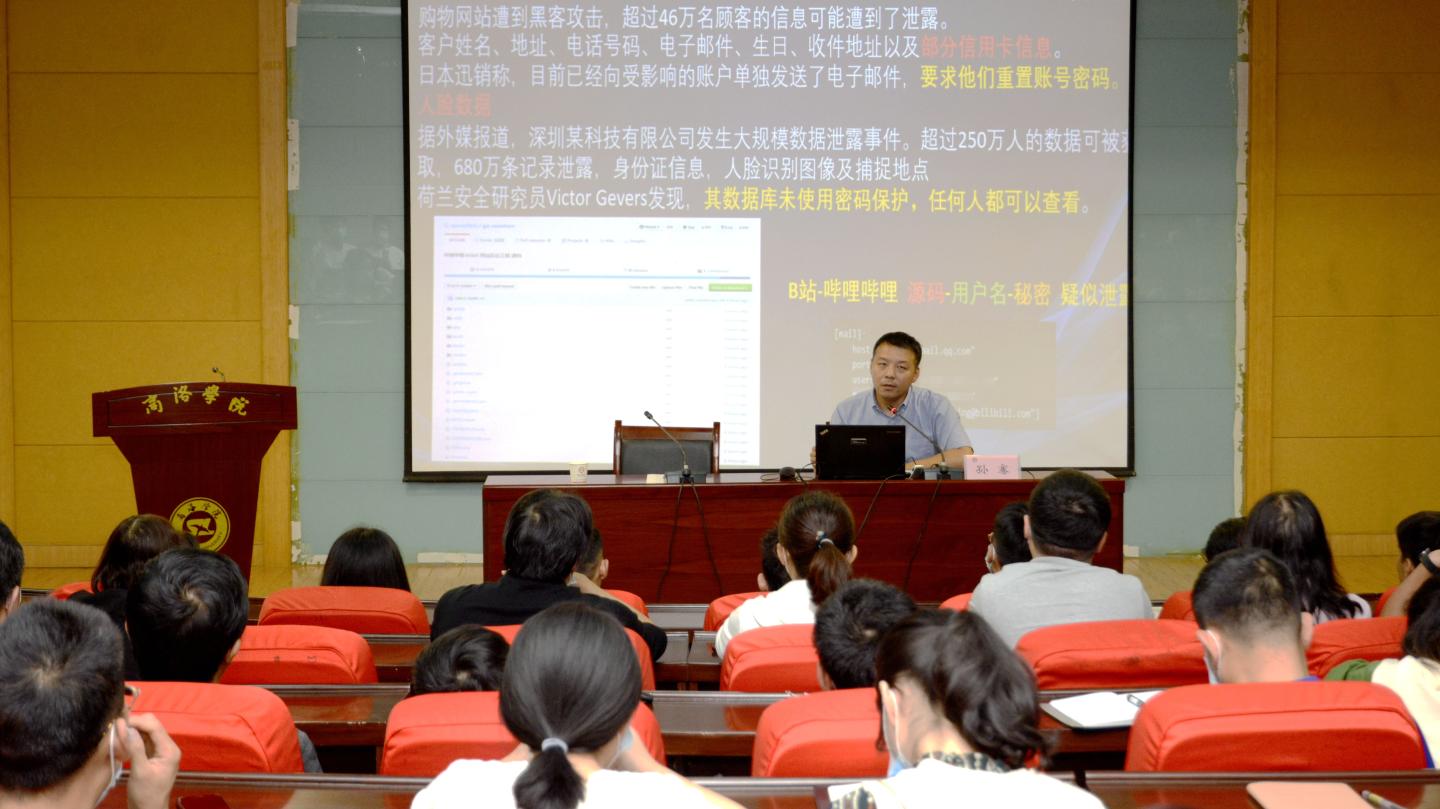 为增强开云官网师生网络安全意识,普及网络安全相关知识,营造健康文明的网络环境,根据学校第七届网络安全宣传周活动安排,9月15日,开云官网举办网络安全知识专家报告会,邀请西北大学孙骞教授来开云官网作了题为《居安思危 思则有备——新时代网络安全工作实践及思考》专题报告。开云官网党委副书记刘勇主持报告会,各职能部门、二级学院信息化专员、教师代表及学生代表参加报告会。