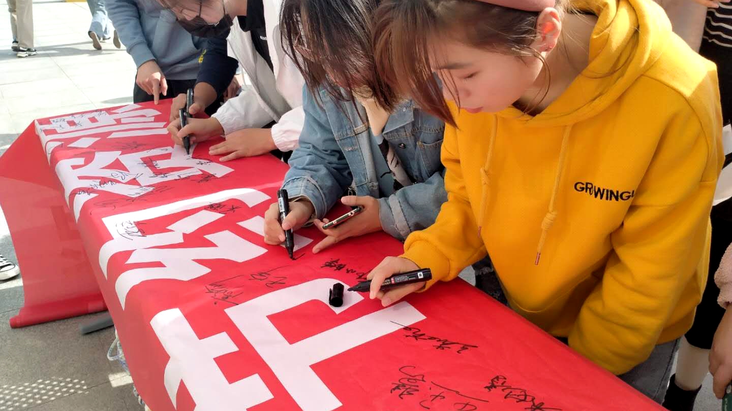 ——书勤俭之德,倡节约之风。马克思主义学院全体学生在8号教学楼前开展“浪费过去式,节约进行时,美好将来时”主题签名活动,同学们在横幅上签下自己的名字,承诺共同践行习近平总书记重要批示精神,积极宣传并带动身边的朋友和家人合理消费、勤俭节约,以自身为基点,层层推动、层层递进,逐渐形成全社会范围内人人节约、处处节俭的良好风尚。该院组织2019、2020级各班班委开展“厉行勤俭节约,反对铺张浪费”视频会议,学习习近平总书记关于厉行节约、制止餐饮浪费批示精神,教育引导学生将“厉行节约、反对浪费”理念内化于心,外化于行。各班还结合自身特点开展了形式多样的主题班会,通过观看节约视频、团体讨论、主题宣讲等多种形式号召全体学生减少浪费行为,为建设节约型校园贡献自己的力量。
