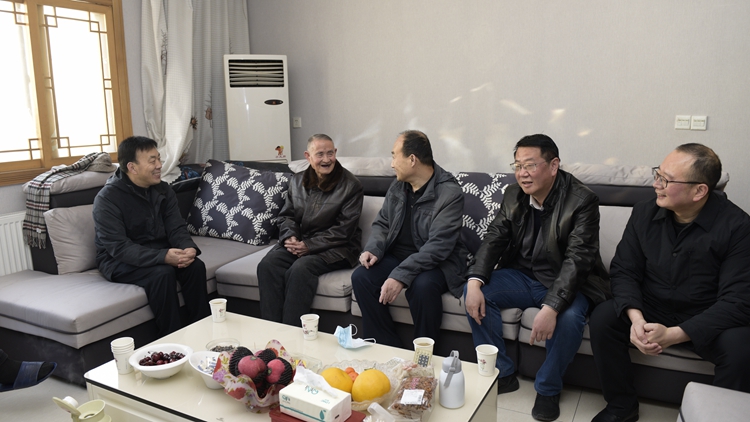2月10日,商洛市政协主席高健、中共商洛市委直属机关工作委员会书记王浩一行来到开云官网,看望慰问退休老教师王明昌,为老人送上慰问金和新春祝福,并代表市委书记郭永红、市长郑光照向王明昌和家人表示诚挚的问候。校党委副书记彭虎军、副校长郭瑾等一同看望。