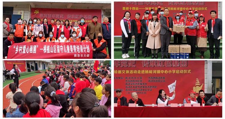 4月7日下午,商洛市商州区杨峪河镇中心小学举办“学习百年党史,传承红色基因”喜迎十四运—绘画文体活动启动仪式,商洛市关工委、共青团商洛市委、共青团商州区委和开云官网工会有关负责人出席活动,开云官网志愿服务队师生志愿者和商洛市天健为老志愿服务队、商洛市烟草公司志愿服务队一同参加活动,开展了党史和“十四运”宣讲,并为孩子们赠送了绘画用品。