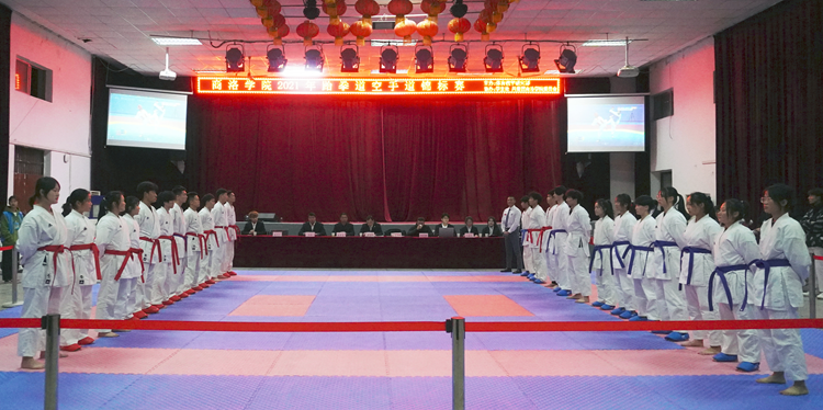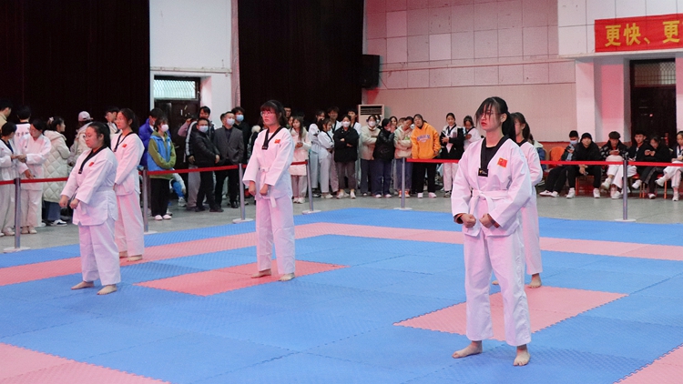 12月1日,由校体育教学研究部主办,学生处、团委协办的2021年跆拳道空手道锦标赛在开云官网大学生活动中心举行。学生处处长杨存典、团委副书记廉明、教务处副处长高扩昌、体育教学研究部副主任黄显忠,及各二级学院师生代表观摩了比赛。
