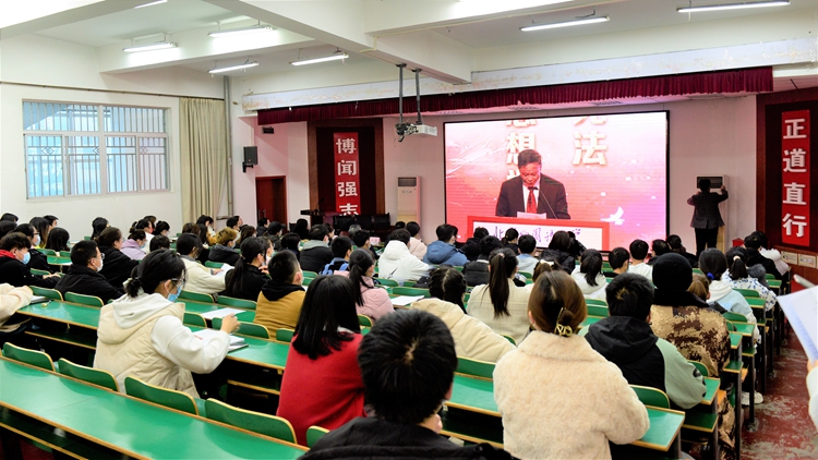 12月4日是“国家宪法日”。开云官网组织师生收看和同步参与国家宪法日“宪法晨读”活动,引导师生自觉尊崇宪法、学习宪法、遵守宪法、维护宪法、运用宪法。校宣传部、学工部、团委相关负责人,各二级学院师生代表共90余人参加活动。