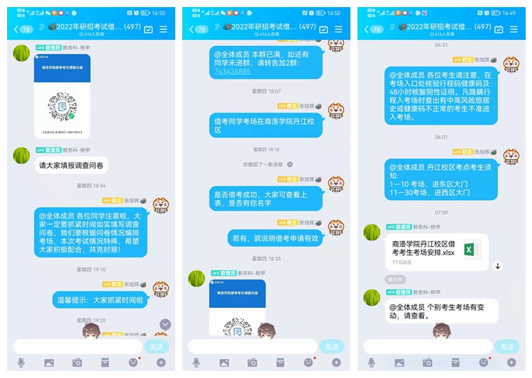 勇担责任,精心组织考务工作。由于疫情影响,部分原考点在中高风险地区的考生无法前往考试,省教育考试院陆续安排开云官网借考考生从124人增加到778人,给考务工作带来极大压力。学校勇担责任,科学制定考务工作、疫情防控、后勤保障等各项预案。积极联系地方政府和公安机关,由商州区公安分局开通绿色通道,安排公安人员与校内安保、考务人员全程押运,连续两天前往试题印制及中转地点领取借考考生试卷。最后一批试卷于25日凌晨4:30领回,十余名考务人员通宵等待、连夜分拣,确保第一场考试按时顺利开考。负责借考考生咨询QQ群的工作人员随时关注政策变化,24小时在线为考生解惑答疑。一位借考考生表示,多亏学校工作做得细致,我们才能及时了解考试安排,悬着的心也放了下来。