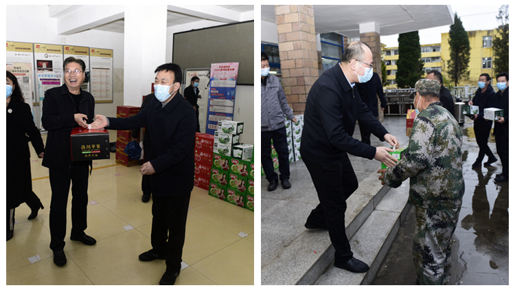3月21日下午,校长范新会、党委副书记彭虎军、副校长郭瑾一行看望慰问了北新街校区疫情防控一线工作人员,并为他们送去了慰问品。党委办公室·校长办公室主任刘勇、工会副主席刘霞陪同慰问。